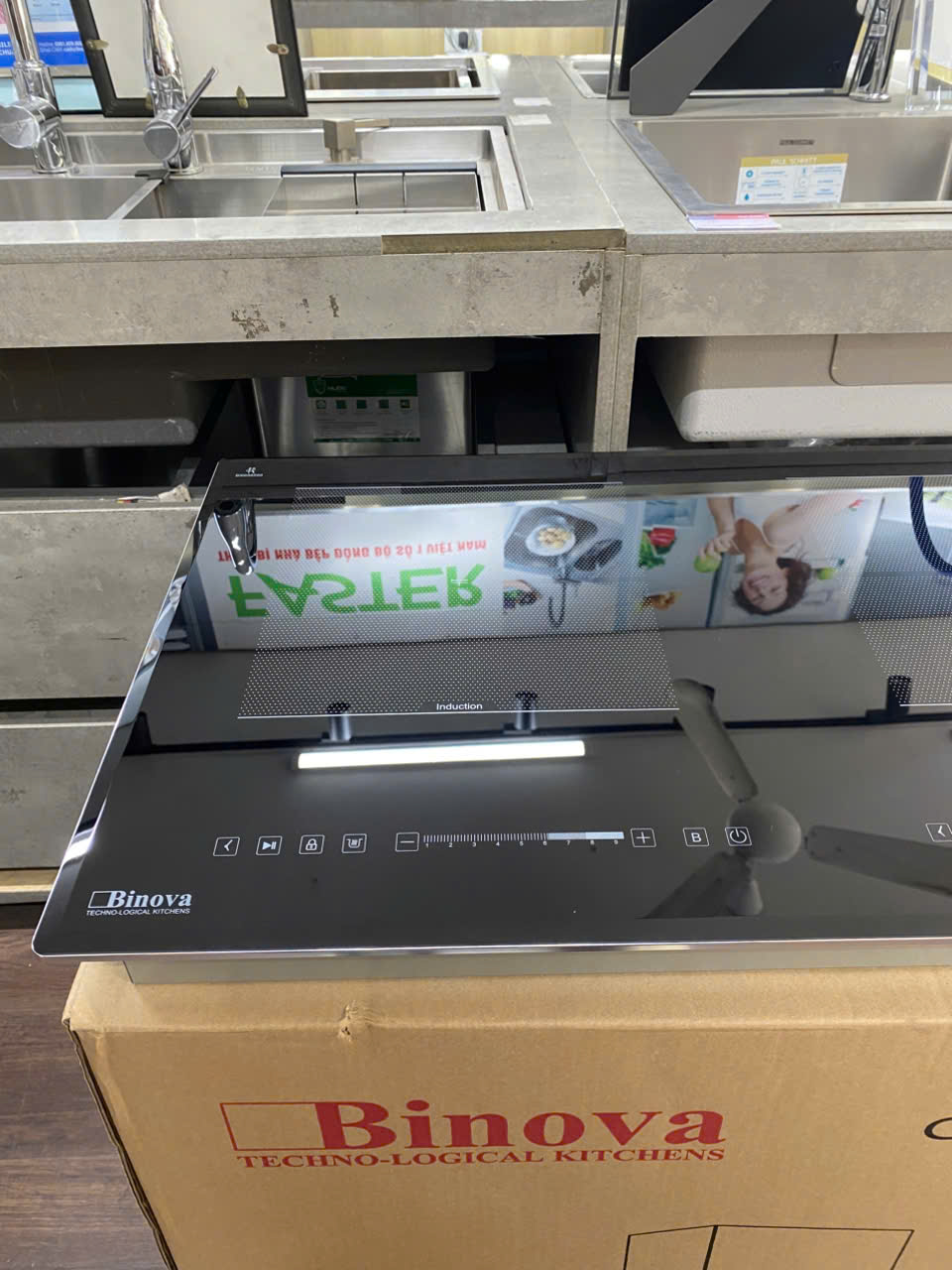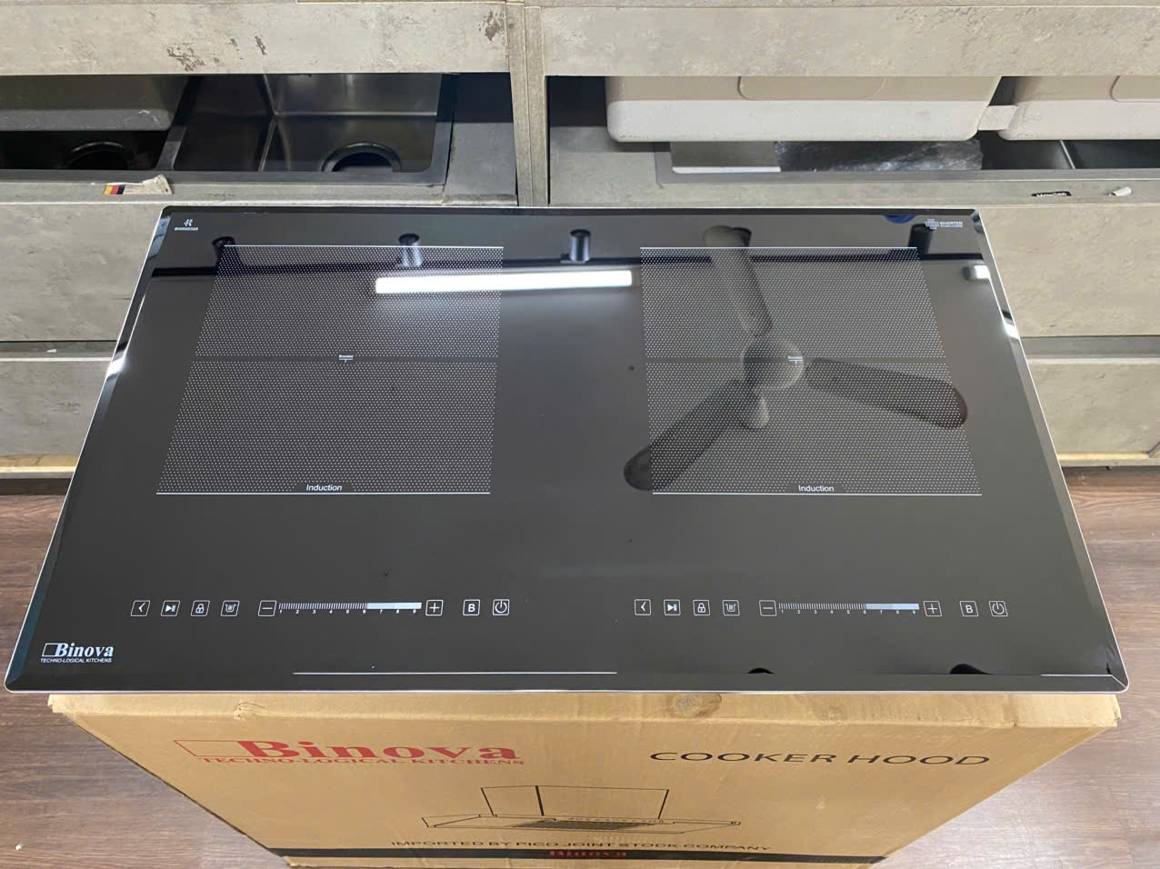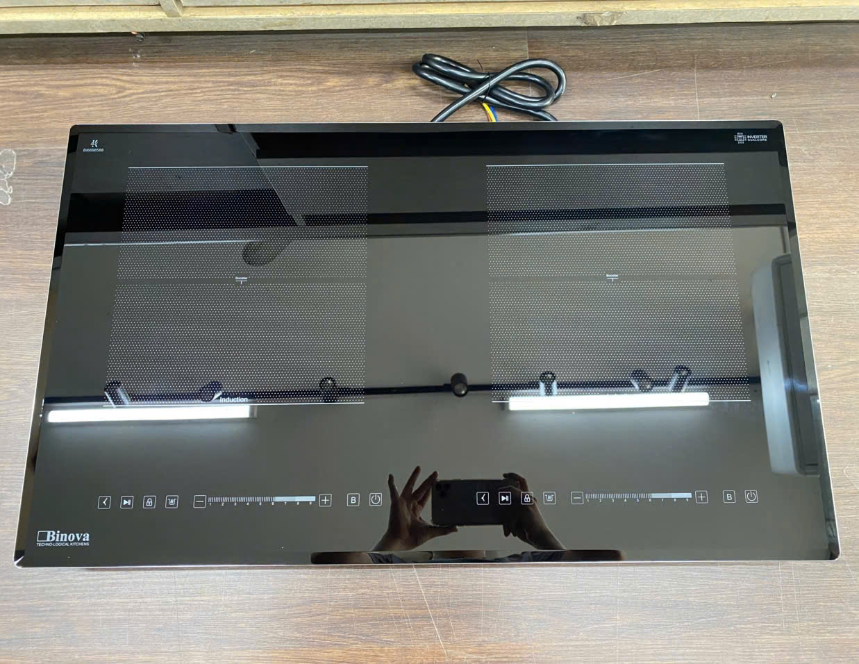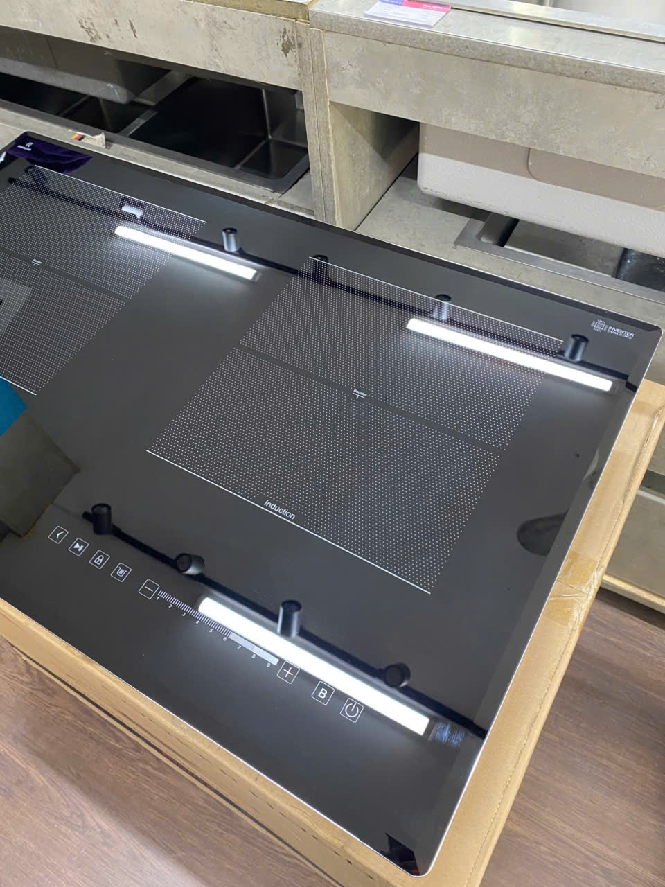 👉Bếp từ âm kính 02 vùng nấu, Mặt kính Kanger, bo viền nhôm 4 cạnh, vát cạnh