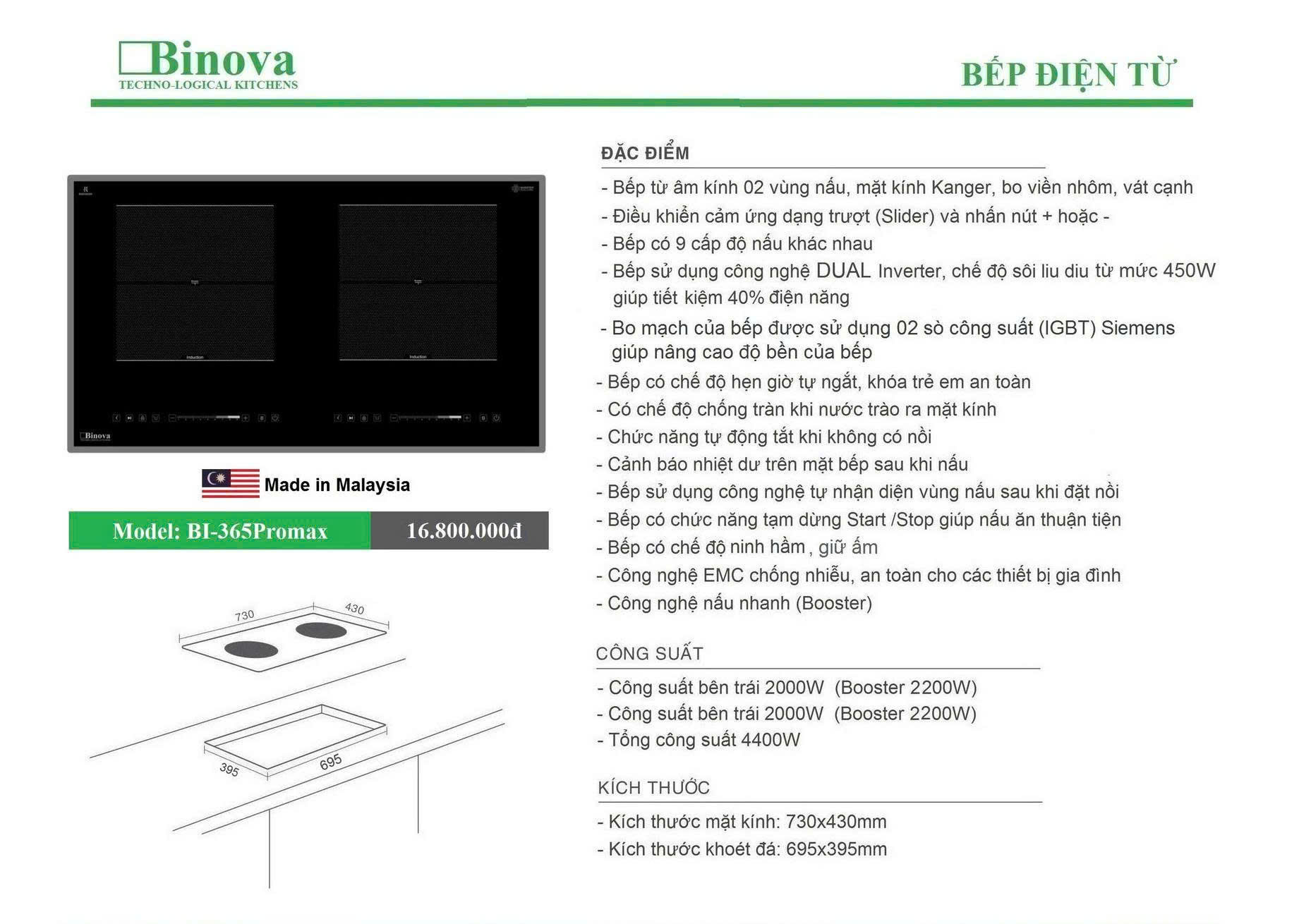 👉Bếp sử dụng công nghệ DUAL Inverter, chế độ sôi liu diu từ mức 450W giúp tiết kiệm 40% điện năng