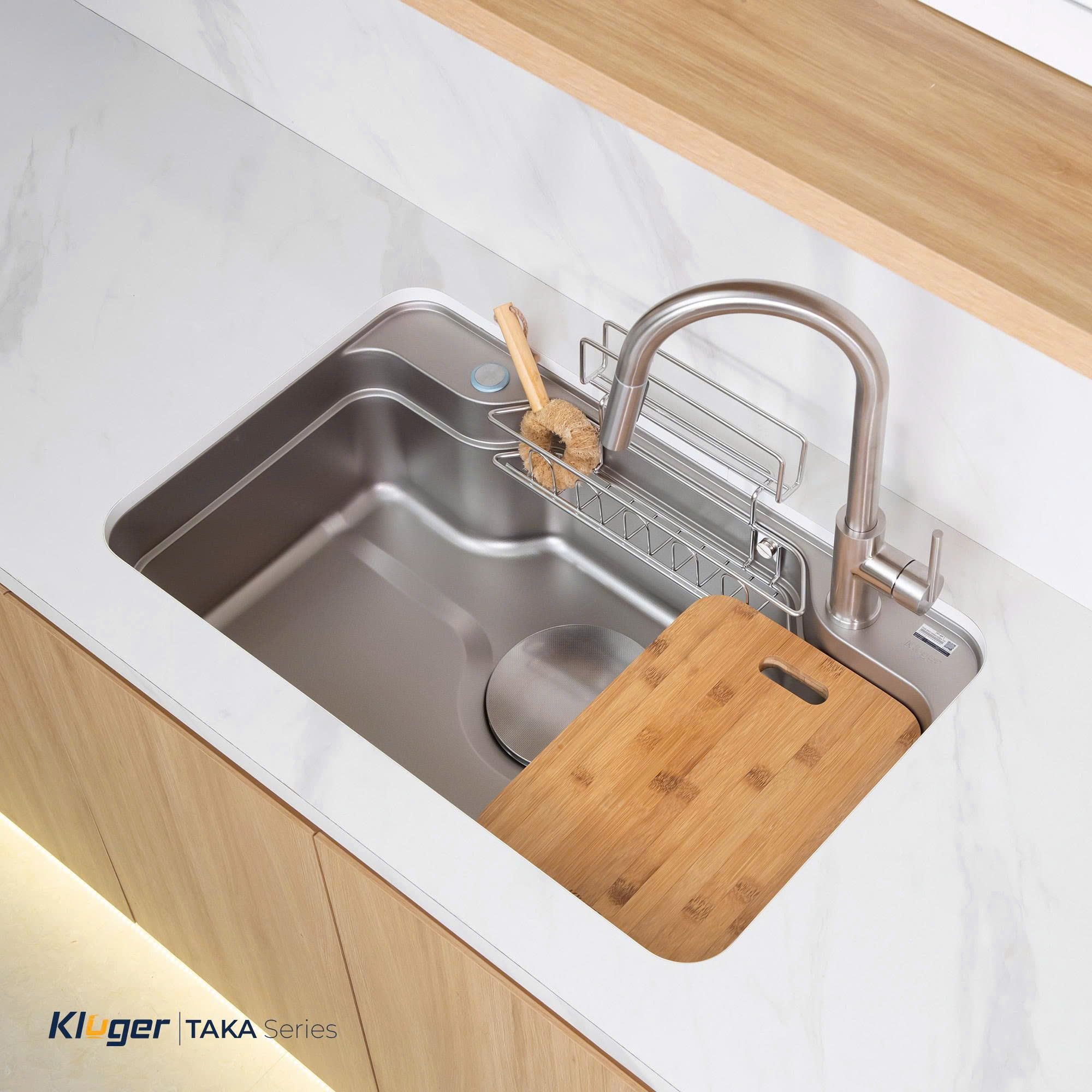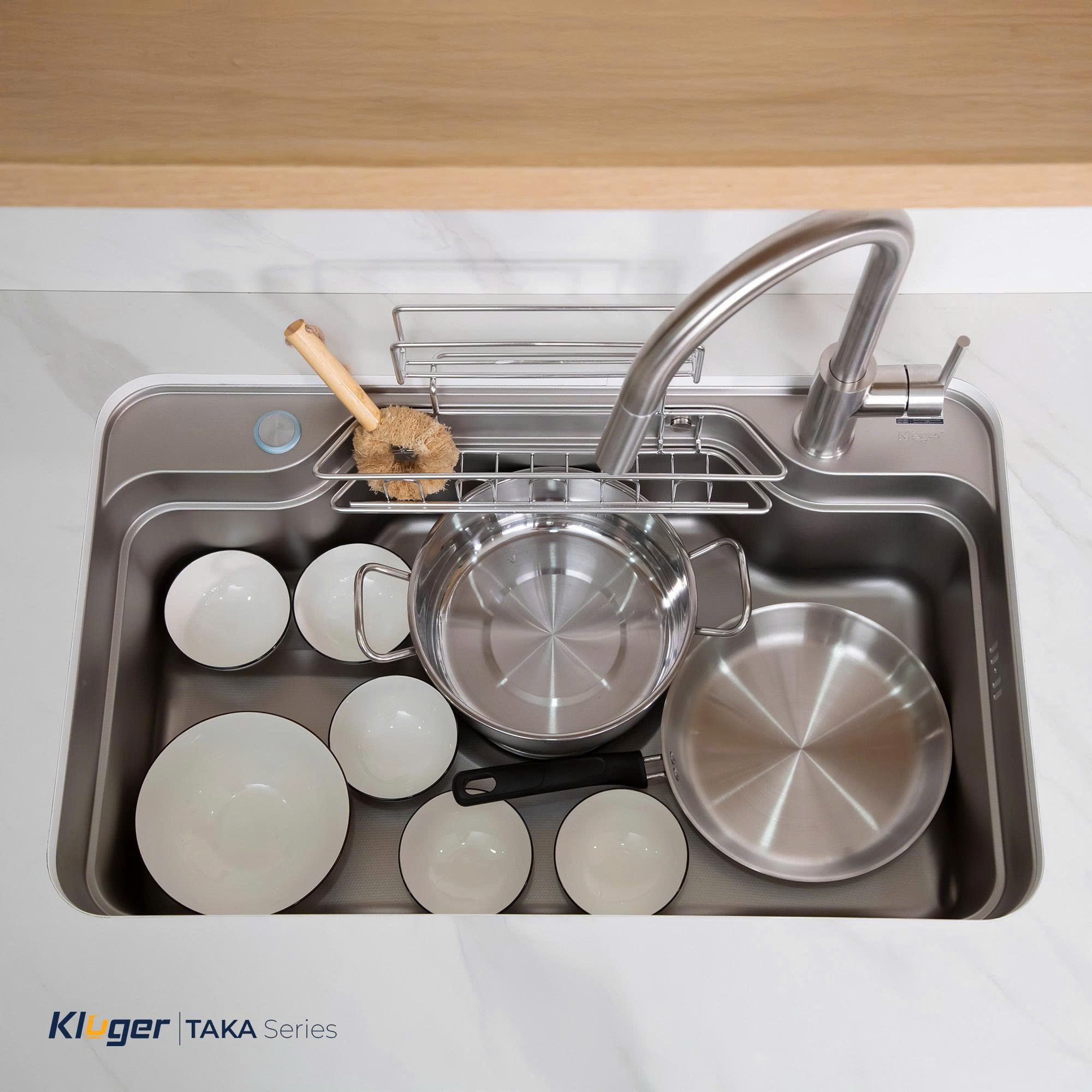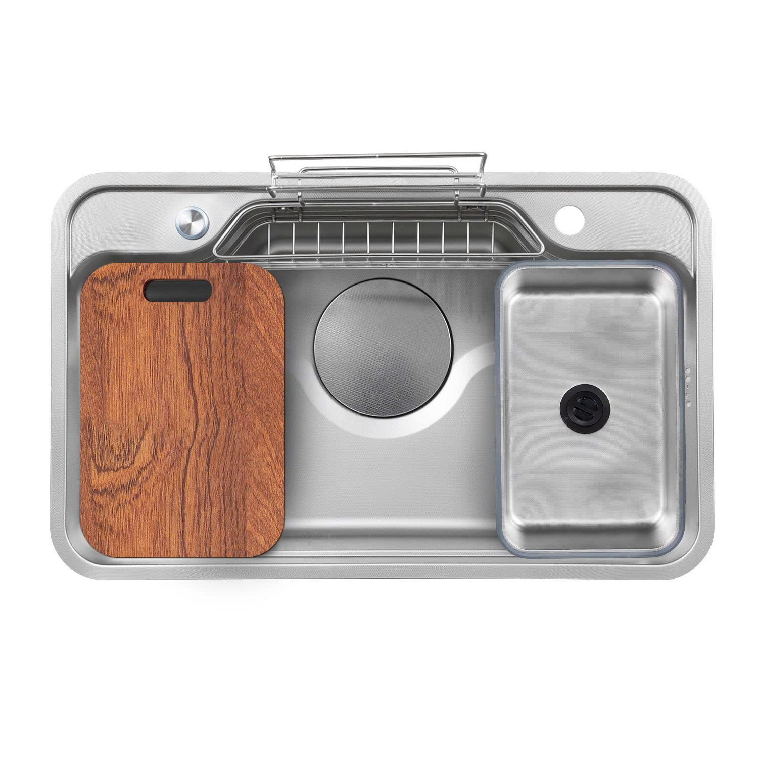👉Bộ sản phẩm bao gồm: 01 chậu rửa + 01 bát rác + 01 Siphon + 01 giỏ inox + 01 thớt gỗ + 02 chậu inox nhỏ.
